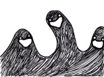 4 drawings that will end up as one print. Each layer will be a different colour in the final version. (silver mountains, Dark blue trees, light blue ghosts and black cabin)