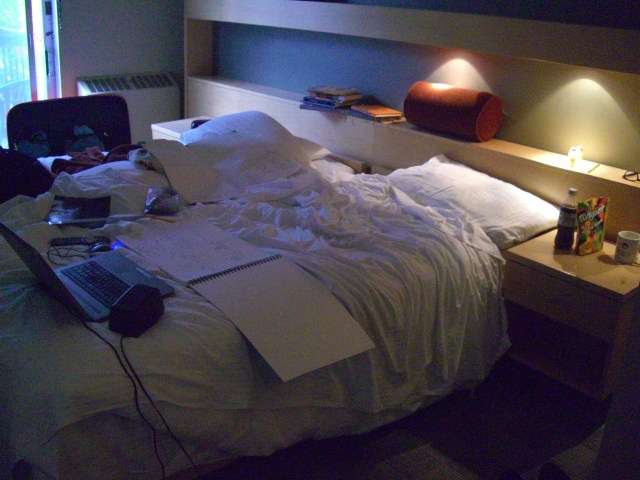 Drawing in Bed today….it is raining and the studio is very cold. I could barely hold a pencil and I sneezed four times….also drawing in a king sized bed (two singles pushed together) is fantastic.